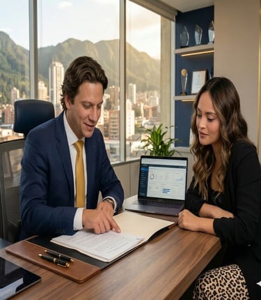 Somos Alejandra Padilla y Darío González — un equipo interdisciplinario que combina derecho, ingeniería industrial y análisis de datos para ofrecer soluciones integrales a empresas y emprendedores colombianos.